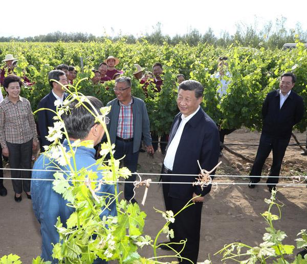 習近平總書記9日在銀川考察調(diào)研。他先后來到賀蘭縣稻漁空間鄉(xiāng)村生態(tài)觀光園、賀蘭山東麓葡萄種植園,了解當?shù)匕l(fā)展特色農(nóng)業(yè)產(chǎn)業(yè)、加強賀蘭山生態(tài)保護等情況。