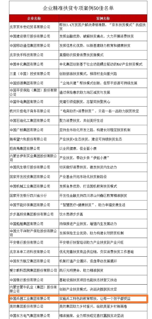 兵器工業(yè)集團(tuán)教育扶貧獲評國務(wù)院扶貧辦2020年企業(yè)精準(zhǔn)扶貧專項(xiàng)案例“50佳” |