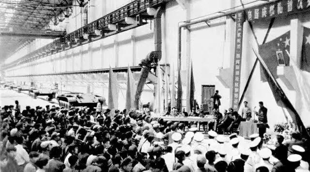 1959年8月22日,凝結(jié)著干部職工心血和汗水的32輛59式坦克,比建廠時計(jì)劃進(jìn)度提前一年交付部隊(duì),經(jīng)過嚴(yán)格考核試驗(yàn)后參加了建國十周年國慶大閱兵。
