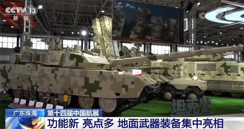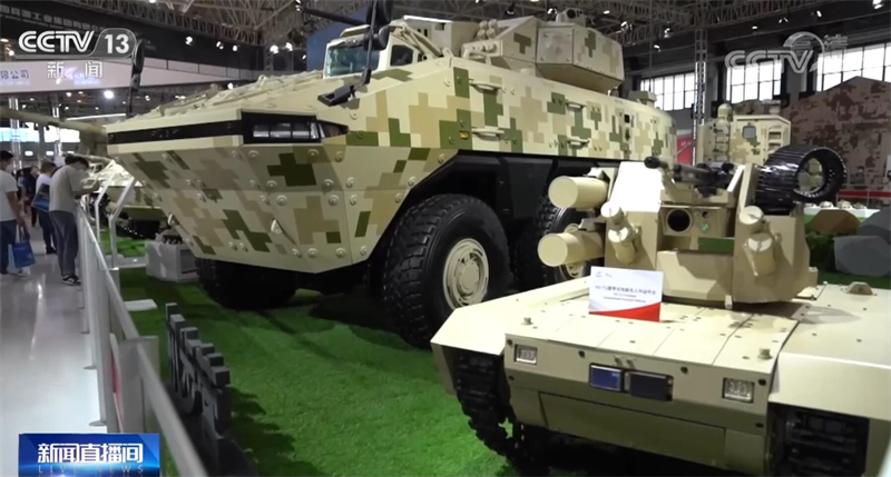 總臺(tái)央視記者 吳天白:我們可以看到,本屆航展兵器館裝備的排列不再是同類型裝備相鄰排列,履帶式的坦克就會(huì)搭配輪式無(wú)人車,而輪式裝甲車就會(huì)配備履帶式無(wú)人車進(jìn)行輔助,采用了一種“輪履結(jié)合”的組合形式。