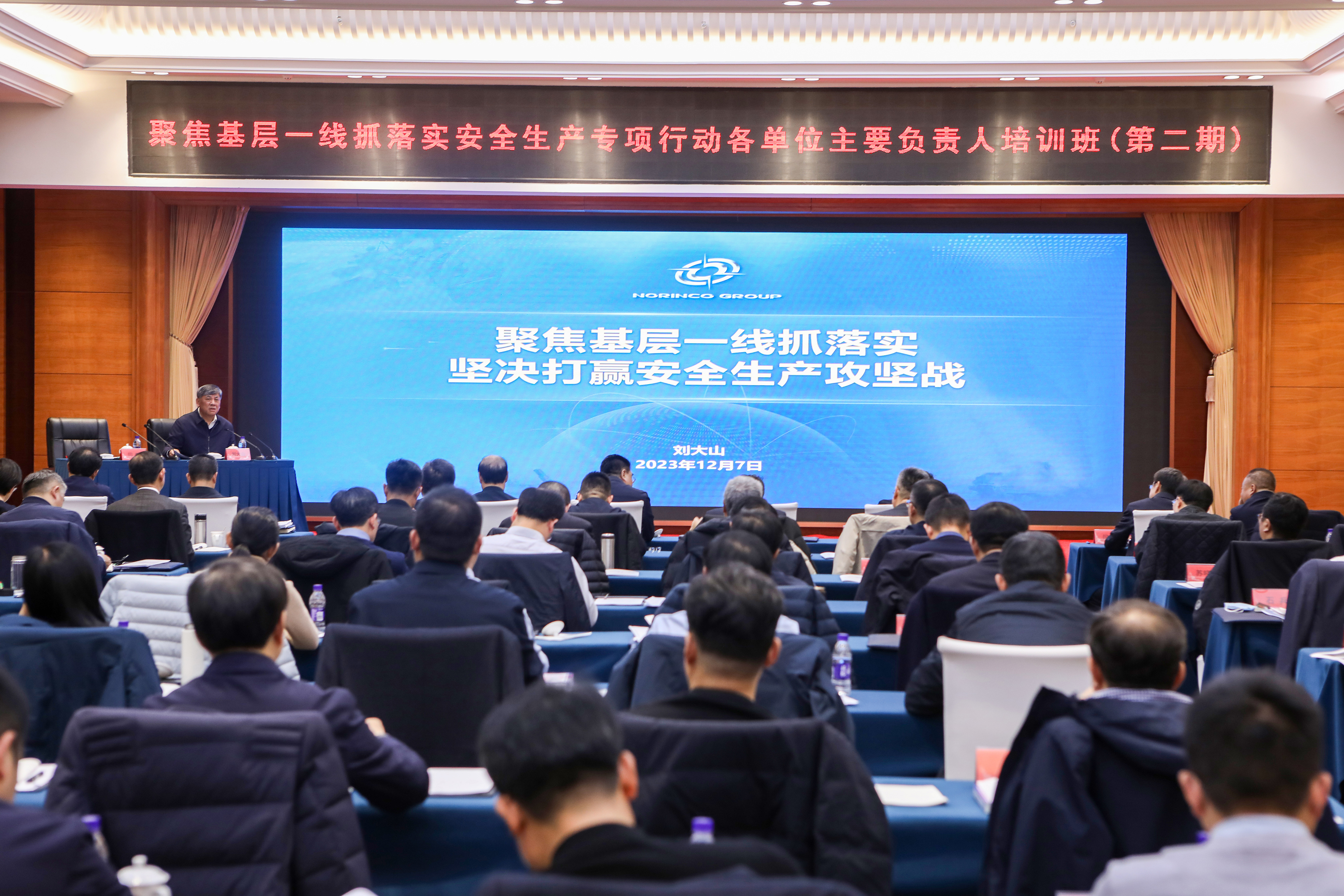 12月7日-8日,中國兵器工業(yè)集團(tuán)有限公司在北京舉辦聚焦基層一線抓落實安全生產(chǎn)專項行動主要負(fù)責(zé)人專題培訓(xùn)班(第二期),深入學(xué)習(xí)貫徹習(xí)近平總書記關(guān)于安全生產(chǎn)重要論述和重要指示批示精神,認(rèn)真落實中央巡視關(guān)于安全生產(chǎn)的反饋意見,貫徹落實集團(tuán)公司關(guān)于聚焦基層一線抓落實安全生產(chǎn)專項行動部署要求,通過工作解讀、安全履職、交流研討等模塊培訓(xùn),進(jìn)一步增強(qiáng)各級領(lǐng)導(dǎo)聚焦基層一線抓落實的政治自覺思想自覺行動自覺,堅決打贏安全生產(chǎn)攻堅戰(zhàn),筑牢集團(tuán)公司高質(zhì)量發(fā)展的安全基石。集團(tuán)公司總經(jīng)理、黨組副書記劉大山出席培訓(xùn)班開班式并作專題授課,黨組成員、總會計師張華,黨組成員、副總經(jīng)理鄒文超、植玉林、閆哲出席開班式,閆哲主持。